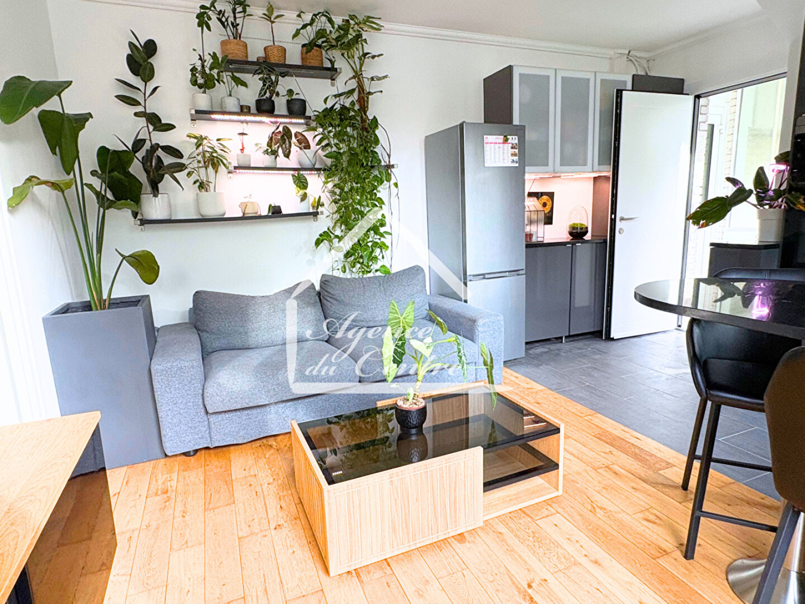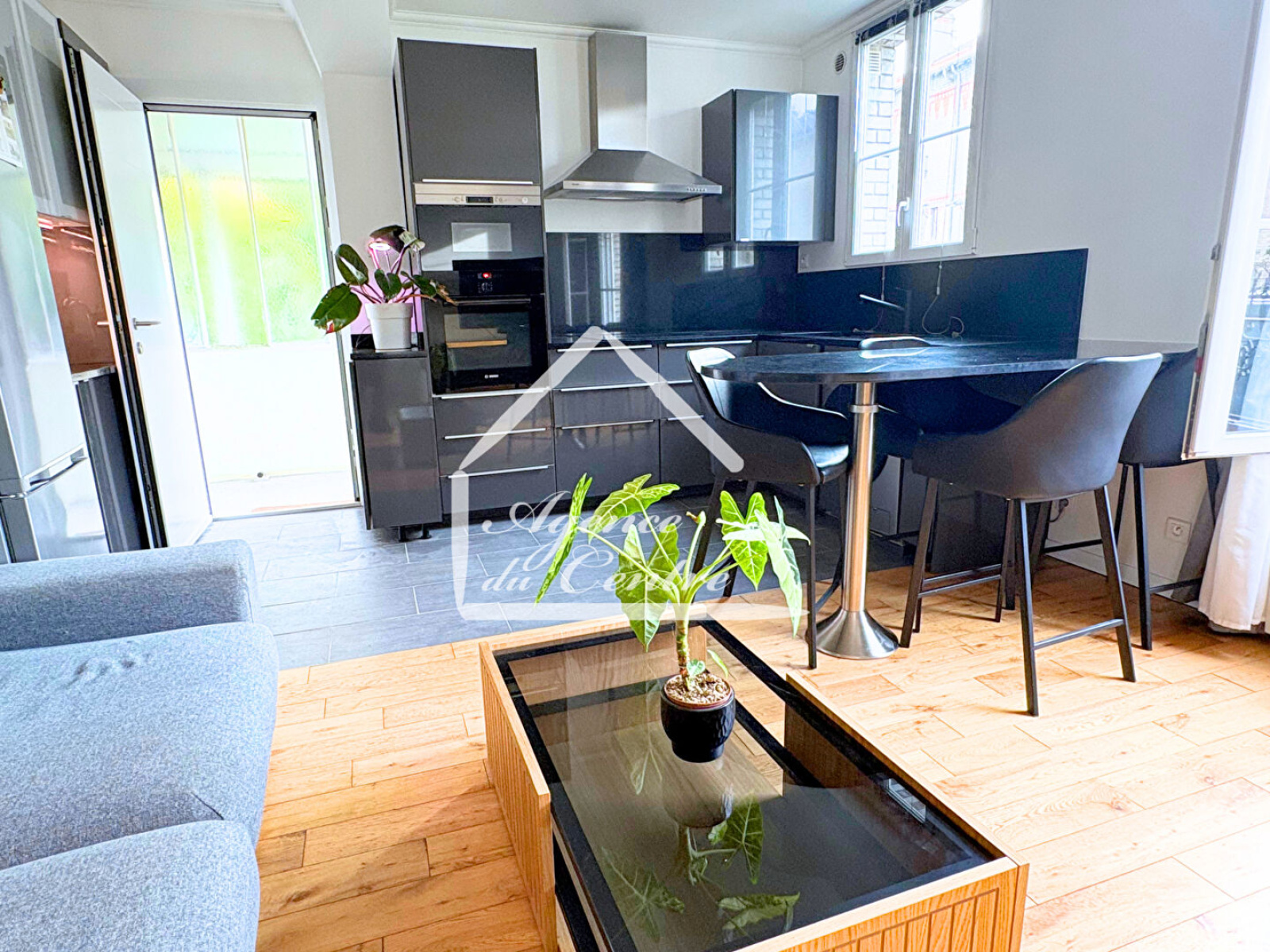 La cuisine, moderne et entièrement équipée, se distingue par son élégant plan de travail en granit, alliant esthétique et durabilité. Elle s'ouvre sur un séjour chaleureux, agrémenté d'un beau parquet, créant une ambiance à la fois conviviale et raffinée.