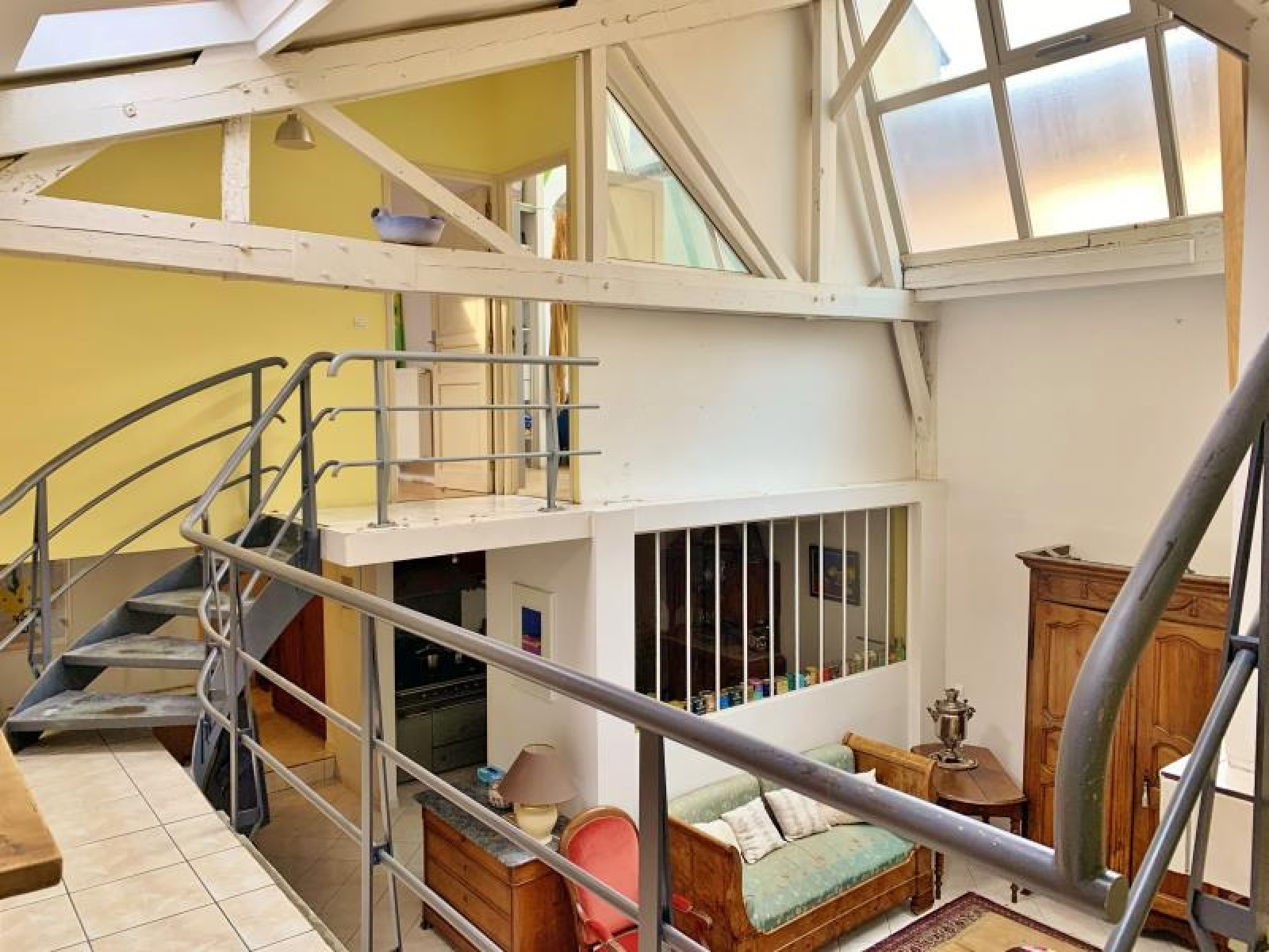 SOUS COMPROMIS. Quartier des Lumières, dans une petite copropriété à  l'abris des regard, au calme et à  4 min à  pieds du RER, nous vous proposons ce Magnifique LOFT de 154m². Magnifique pièce de vie de 47m² avec une hauteur sous plafond à  7m, cuisine semi ouverte le tout avec accès au jardin comprenant une terrasse spacieuse, bureau, une chambre, arrière cuisine/buanderie, salle d'eau et toilettes séparés. A l'étage: en mezzanine un couloir desservant 4 chambres, une salle d'eau, toilettes. Parking et local vélo-atelier. COUP DE COEUR.