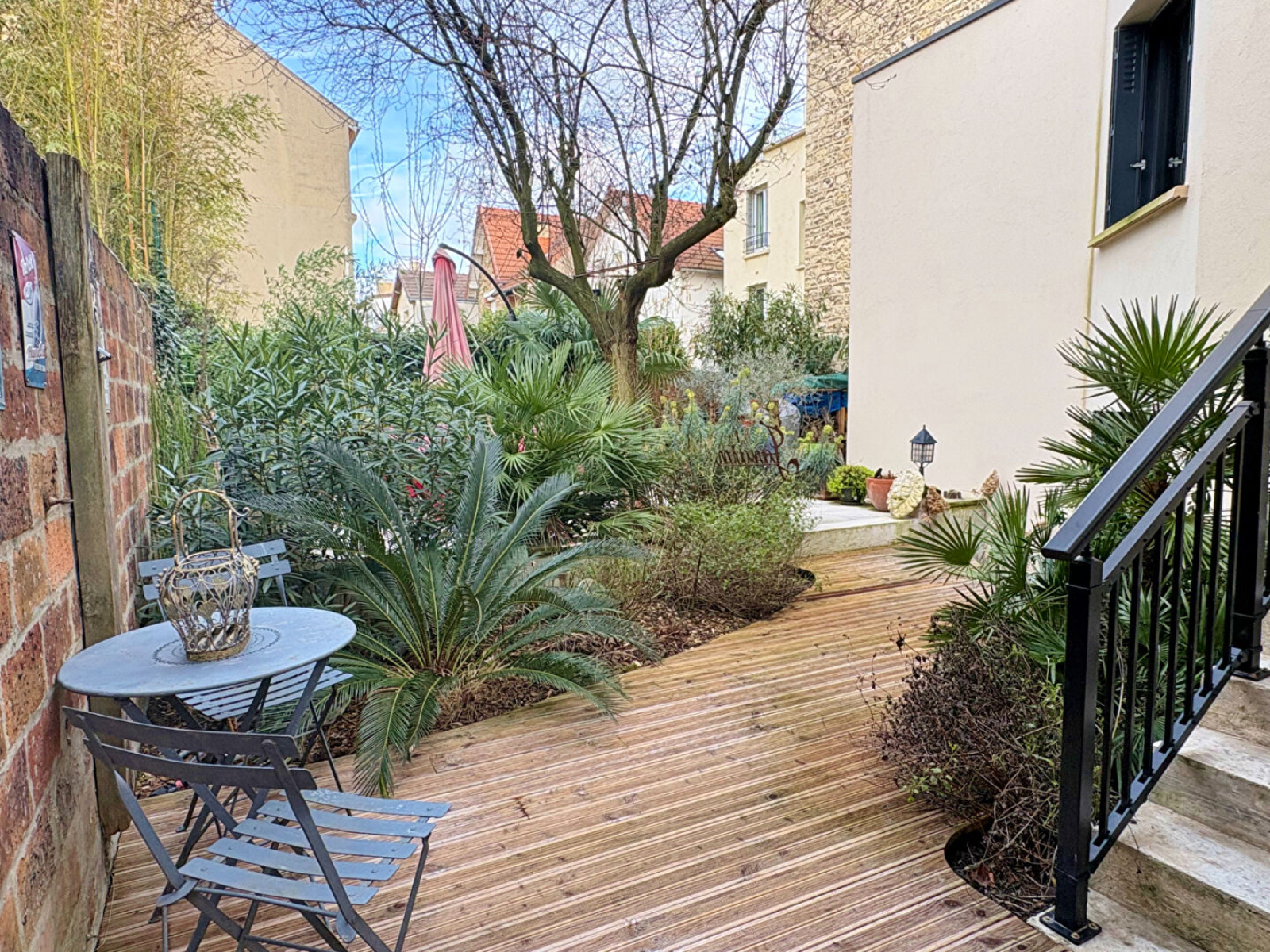 Le tout est complété par un jardin paysager avec terrasse, sans vis-à-vis, idéal pour profiter des beaux jours en toute tranquillité. Un véritable havre de paix, rare sur le secteur, permettant de conjuguer vie urbaine et environnement verdoyant, avec un extérieur propice à la détente et aux moments en famille.