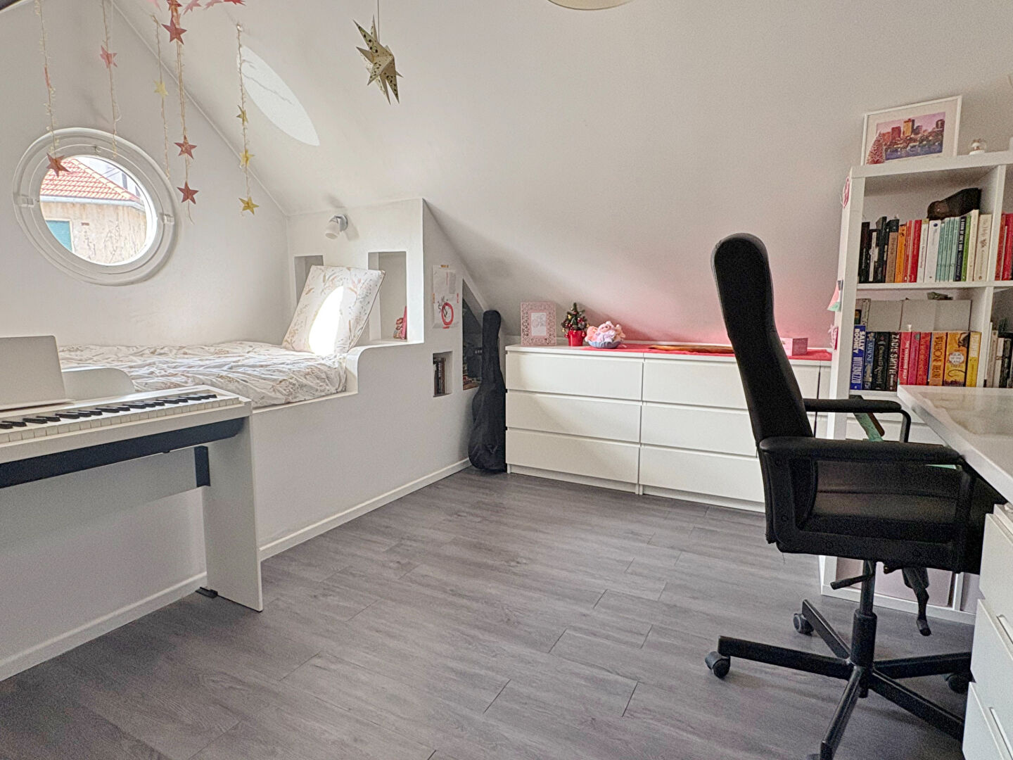 À l'étage, vous trouverez deux chambres mansardées, pleines de charme, idéales pour des enfants, un bureau ou un espace nuit complémentaire.