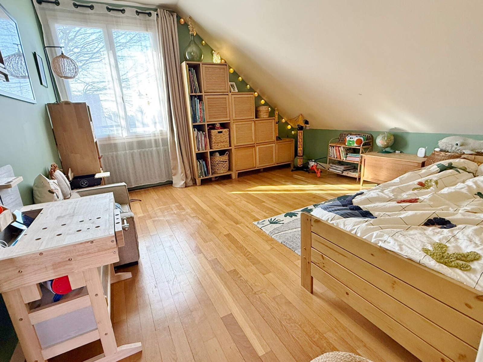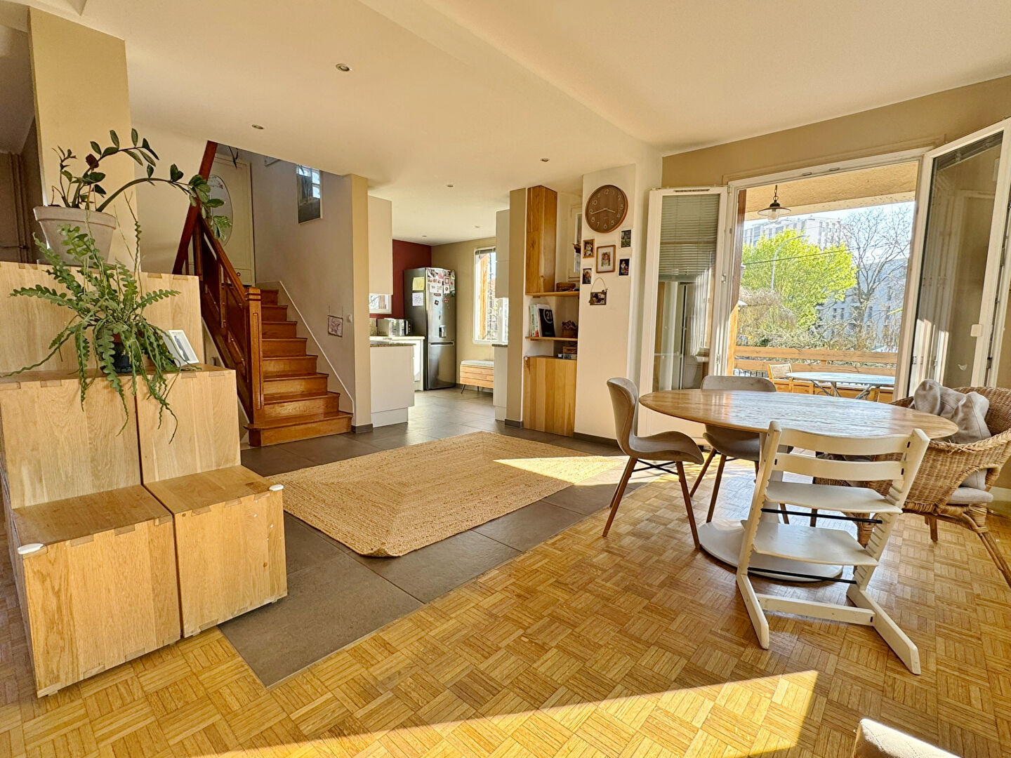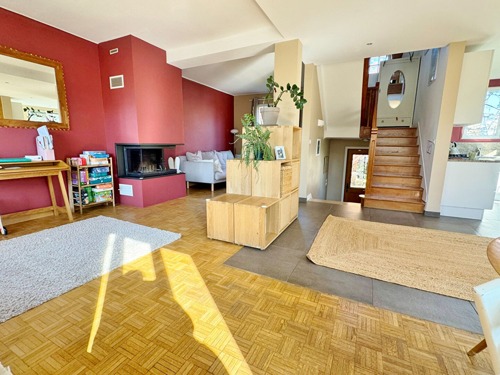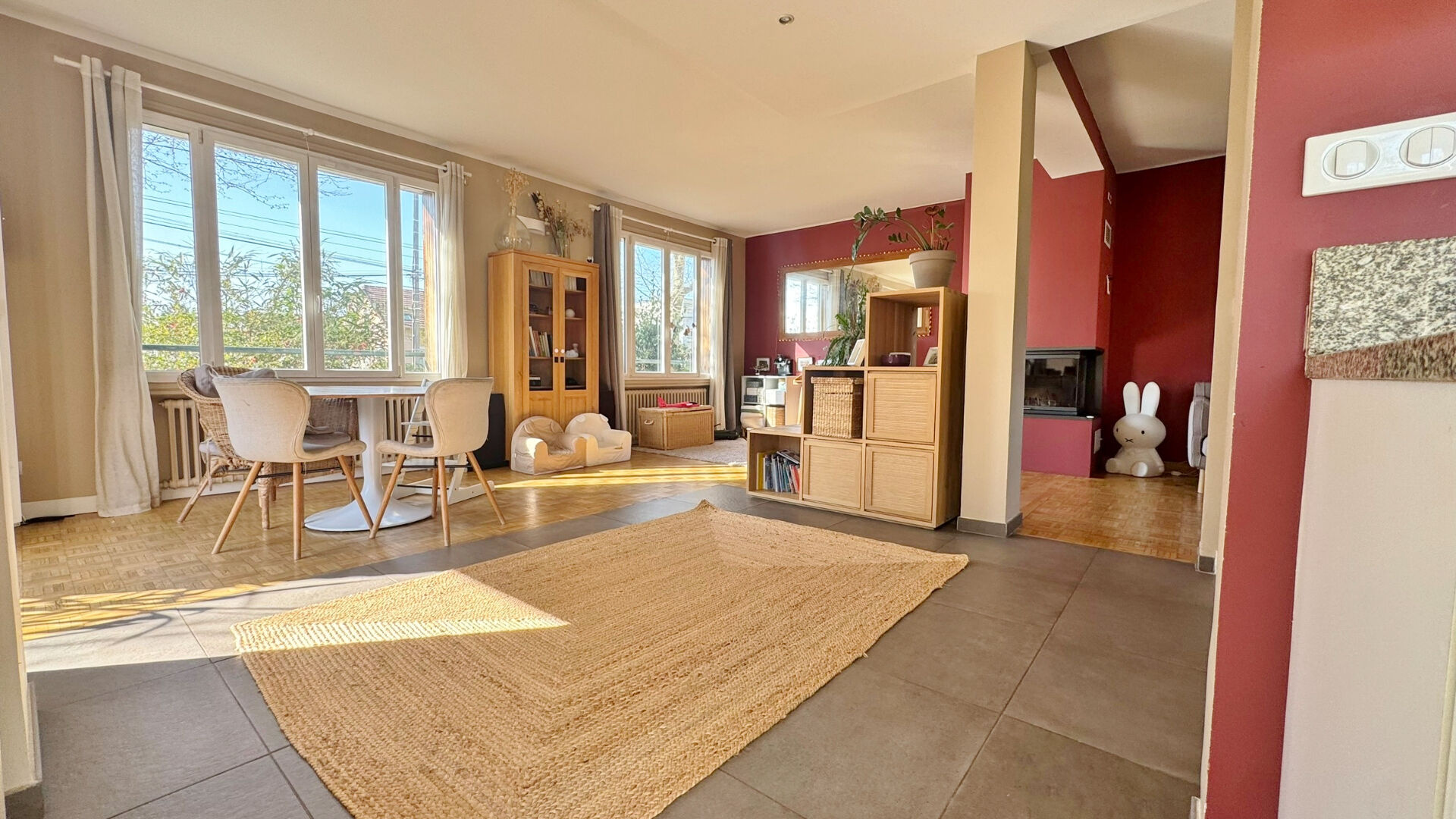 Dès l'entrée, vous découvrez une maison chaleureuse et lumineuse, où chaque espace a été pensé pour le confort du quotidien. La pièce de vie, spacieuse et baignée de lumière grâce à ses nombreuses ouvertures, s'articule autour d'un séjour convivial avec cheminée insert, prolongé par une salle à manger accueillante. La cuisine équipée, ouverte sur cet ensemble, crée un véritable lieu de partage, parfait pour recevoir famille et amis.