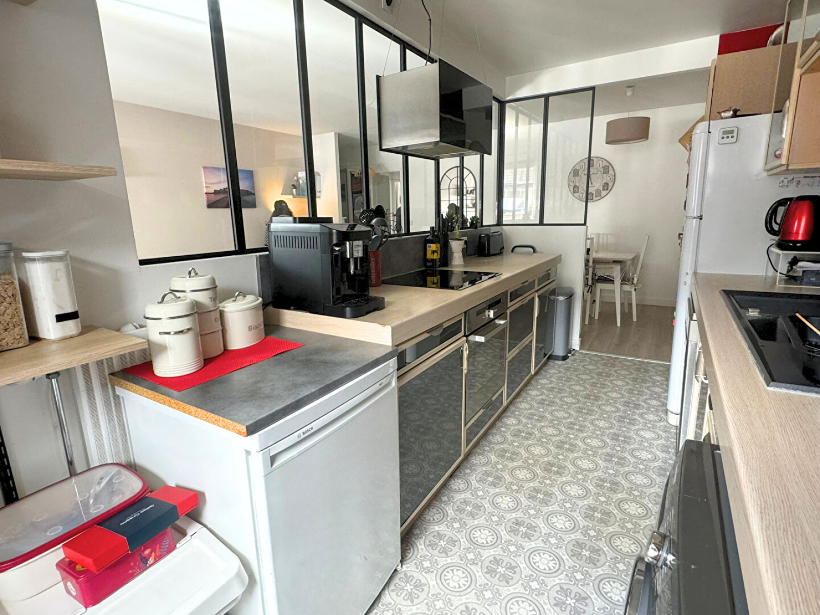 Il est agrémenté d'une grande cave et d'un box en sous-sol. L'appartement est dans un état remarquable, décoré avec goût et très bien entretenu. Coup de coeur assuré!