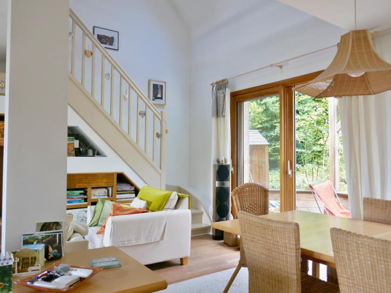 garage, buanderie, cave, chaufferie, bureau.~Au rez-de-chaussée, séjour, salle à manger avec insert, cuisine équipée, chambre, toilettes. Au premier étage : un palier bureau, deux chambres, salle de bains avec toilettes. ~Terrasse. Possibilité de faire une quatrième chambre sur le palier.CACHAN - COTEAU - En limite du Centre-ville, sectorisée école du Coteau et Paul Bert, à 15 min à pieds du Rer Arcueil Cachan station métro 15 du Grand Paris, COUP DE COEUR pour cette maison familiale lumineuse en parfait état, avec une vue panoramique sur Cachan comprenant: une entrée donnant sur la pièce de vie avec séjour cathédrale de plain-pieds avec la terrasse et le jardin paysagé, une cuisine dinatoire équipée, une chambre et un toilette.~A l'étage, deux chambres, un grand palier possibilité 4ème chambre, salle de bains avec toilettes.~Au sous-sol aménagé, un bureau, une pièce de rangement, buanderie, cave, de nombreux rangements, et un garage. A visiter rapidement.